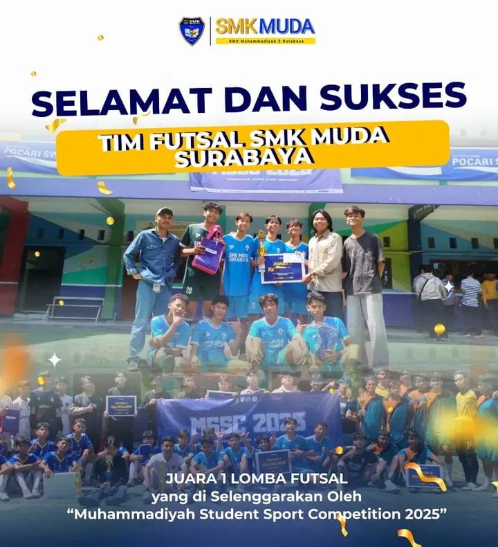 Surabaya – Tim futsal SMK Muhammadiyah 2 Surabaya berhasil meraih Juara 1 dalam ajang Muhammadiyah Student Sport Competition (MSSC) 2025 yang diselenggarakan pada 22 September 2025. Prestasi ini menjadi bukti semangat sportivitas, kerja sama tim, d... [ Baca Selengkapnya ]