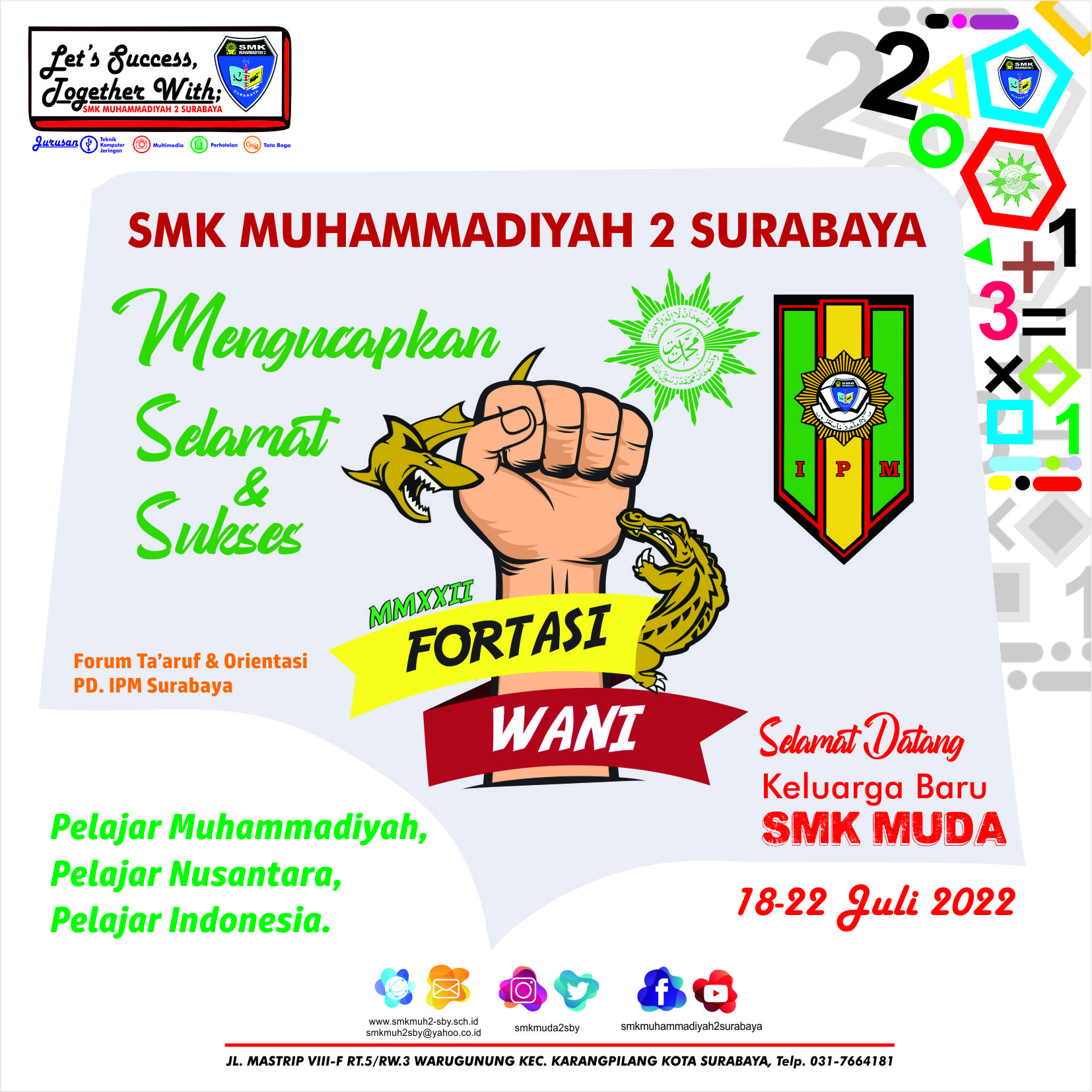 FORTASI & MPLS SMK MUDAFortasi atau yang biasa dikenal dengan Forum Ta'aruf dan Orientasi Siswa atau MPLS / Masa Pengenelan Lingkungan Sekolah, SMK Muhammadiyah 2 Surabaya membikin acara ini pada hari senin-kamis, 18 - 21 Juli 2022 yang dibuka la... [ Baca Selengkapnya ]